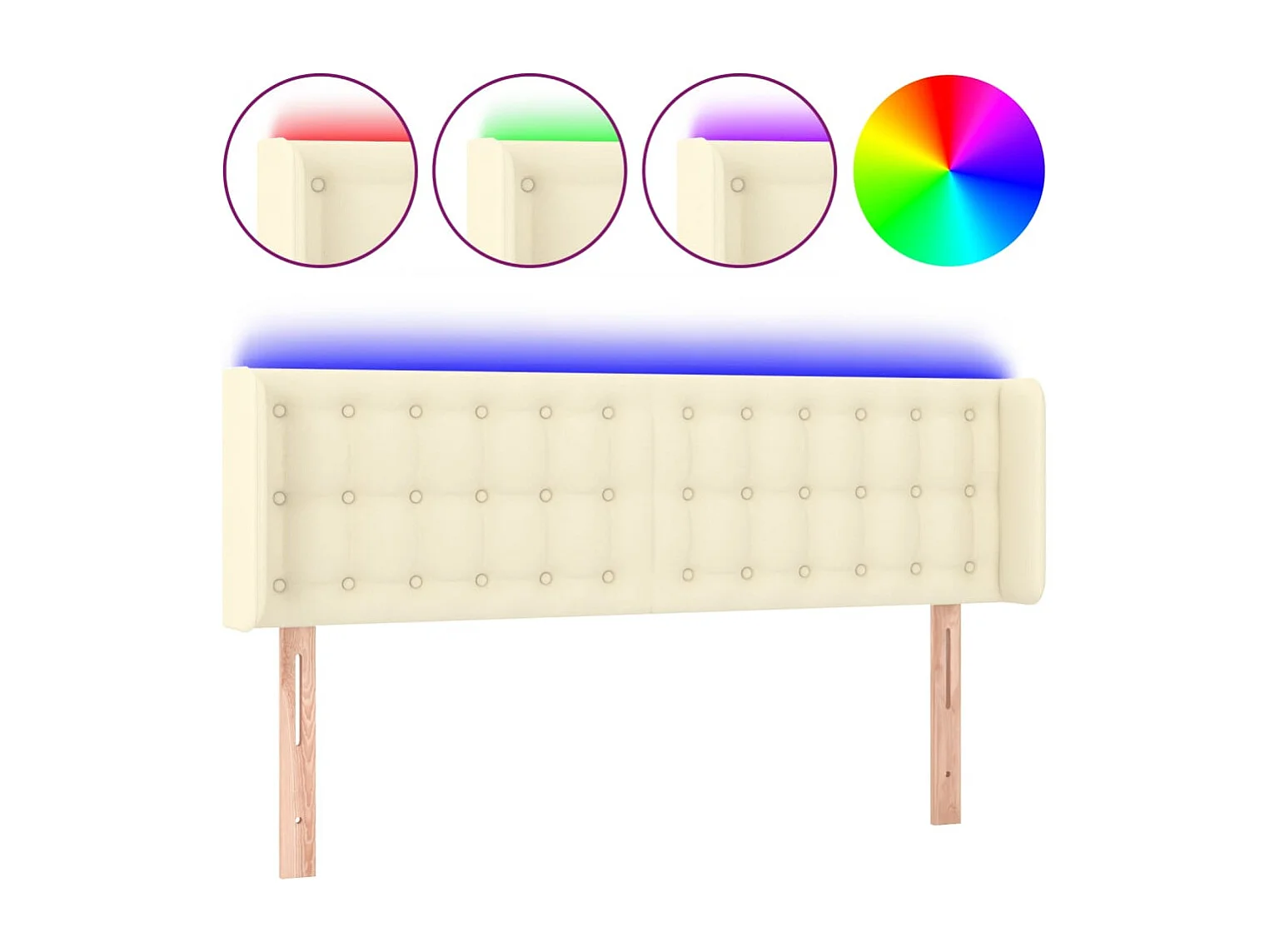 Cabecero | Cabezal de Cama | Mueble cabecero con LED cuero sintético crema 147x16x78/88 cm