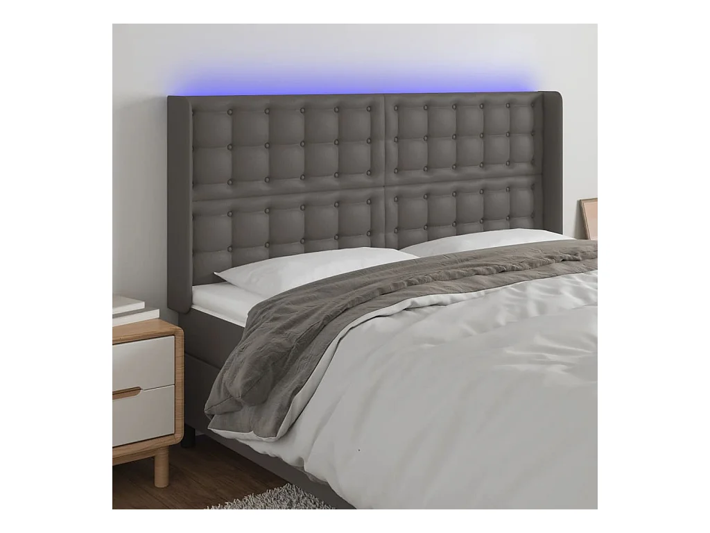 Cabecero | Cabezal de Cama | Mueble cabecero con LED cuero sintético gris 163x16x118/128cm