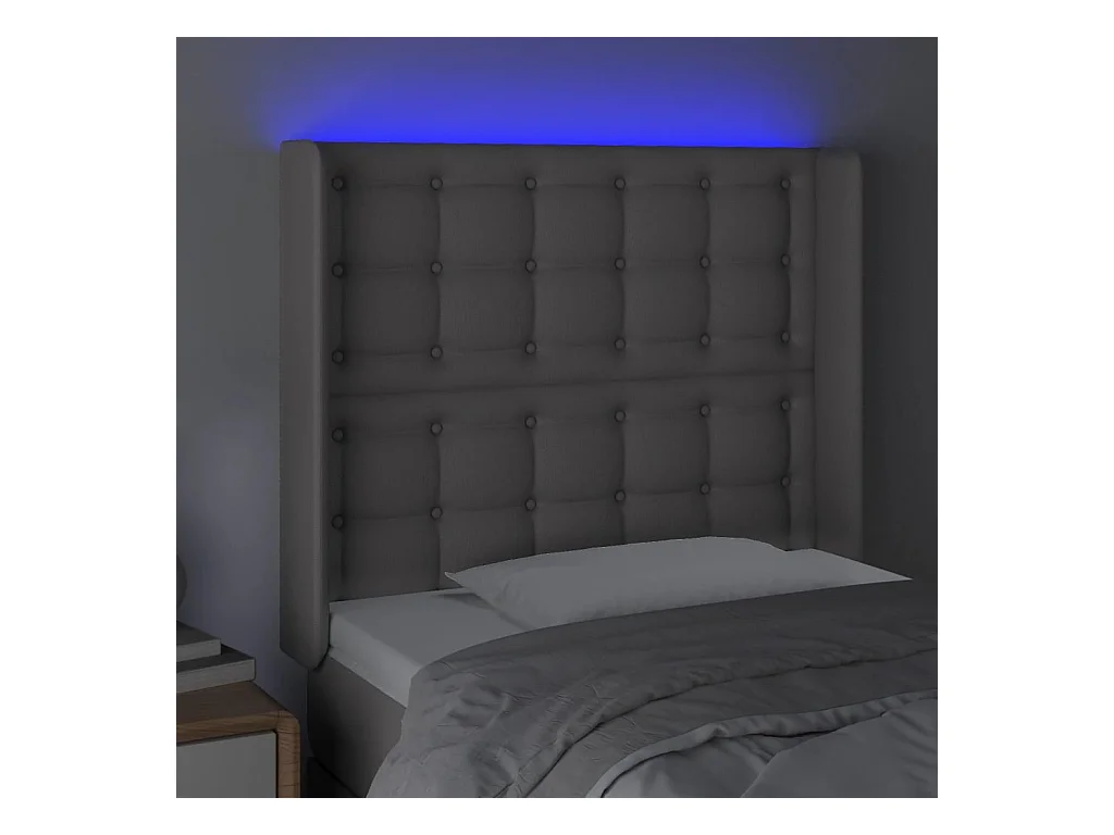 Mueble cabecero | Cabezal de cama | Cabecero con LED de tela gris claro 83x16x118/128 cm