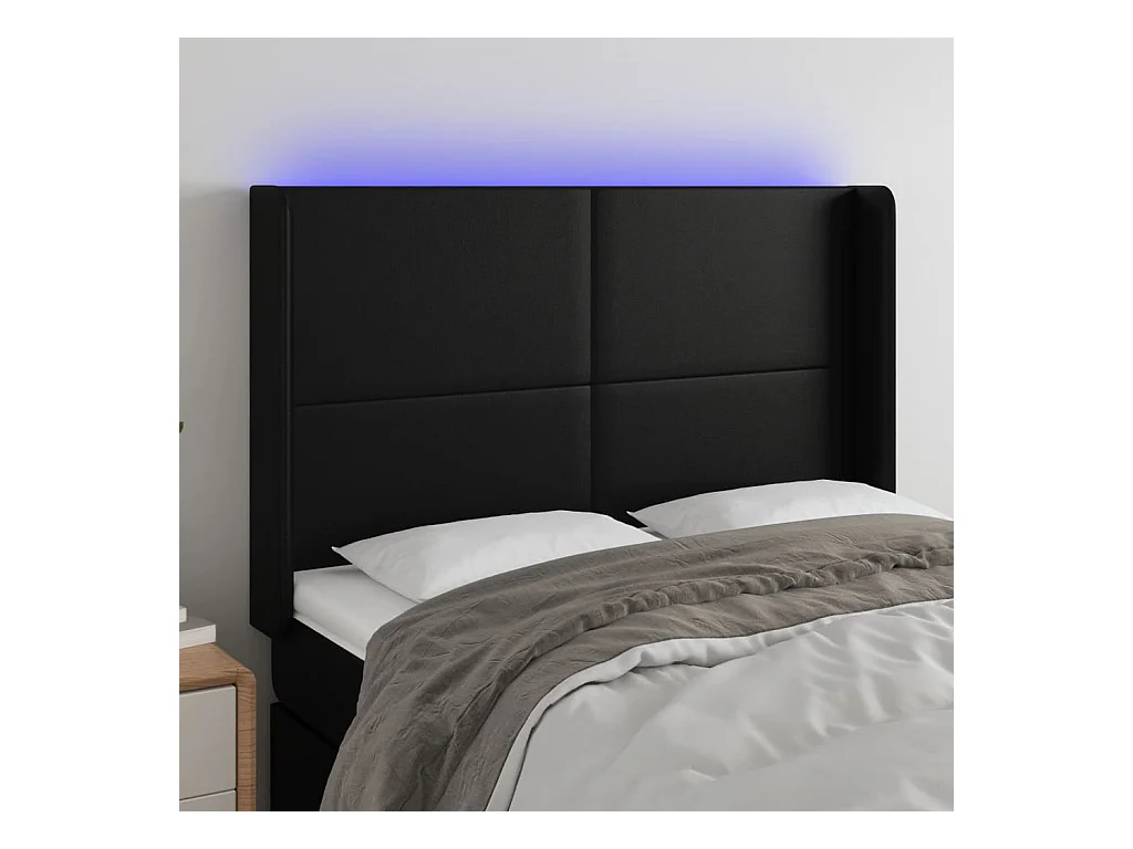 Cabecero | Cabezal de Cama | Mueble cabecero con LED cuero sintético negro 147x16x118/128 cm