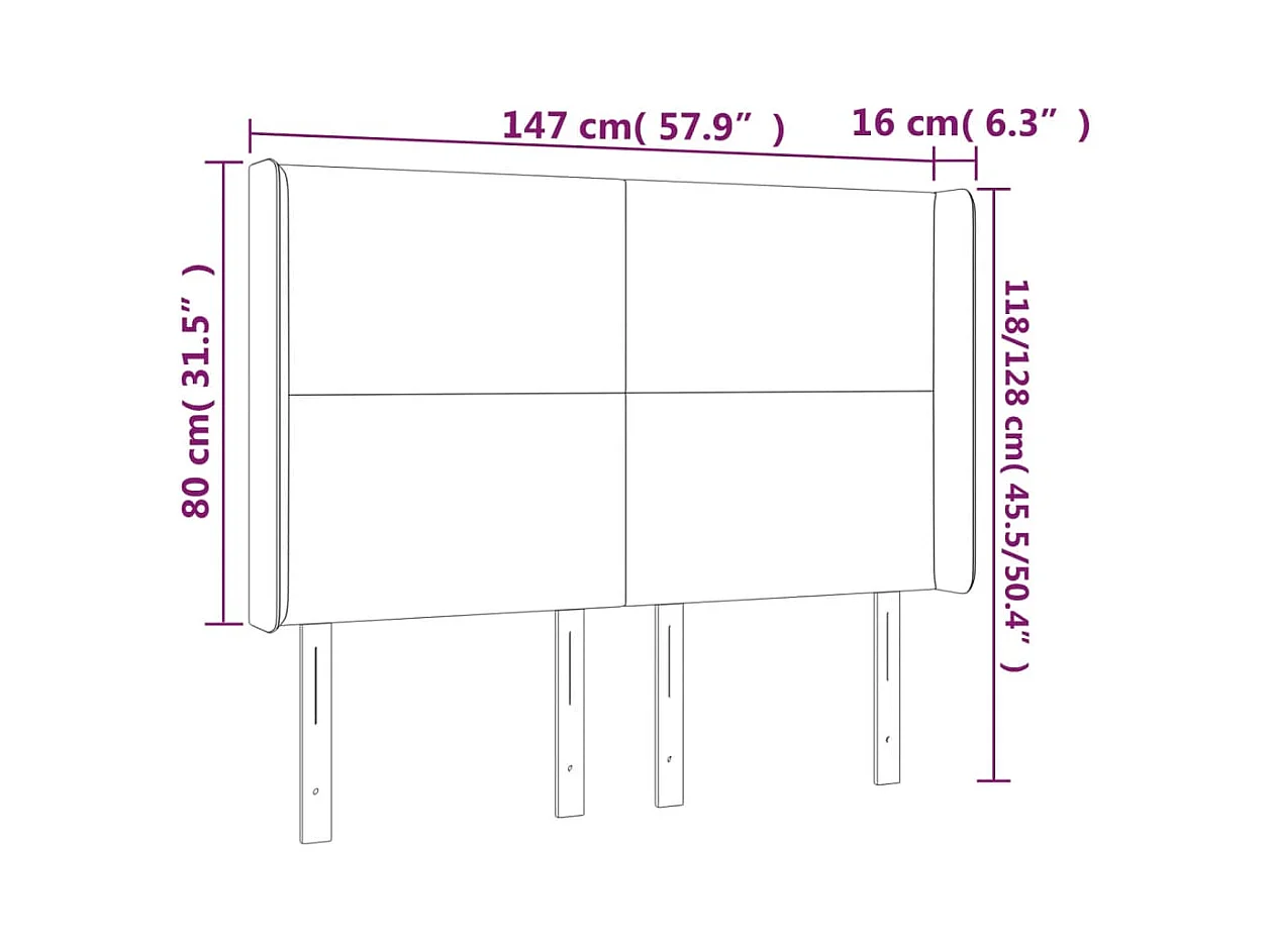Cabecero | Cabezal de Cama | Mueble cabecero con orejas de tela negro 147x16x118/128 cm