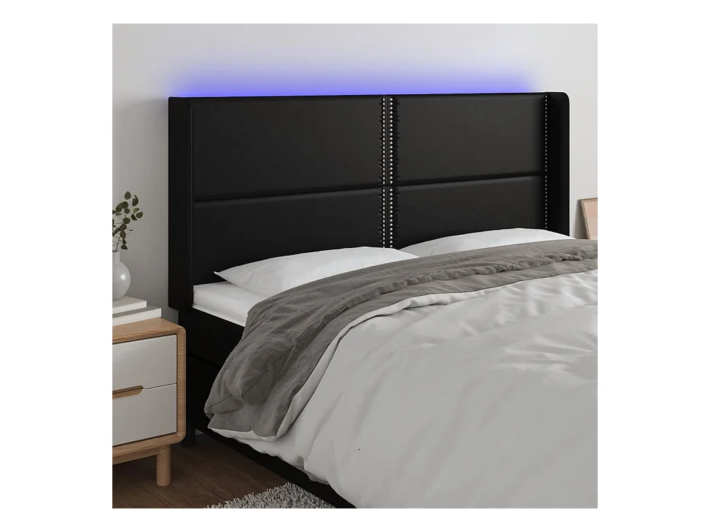 Cabecero | Cabezal de Cama | Mueble cabecero con LED cuero sintético negro 163x16x118/128 cm