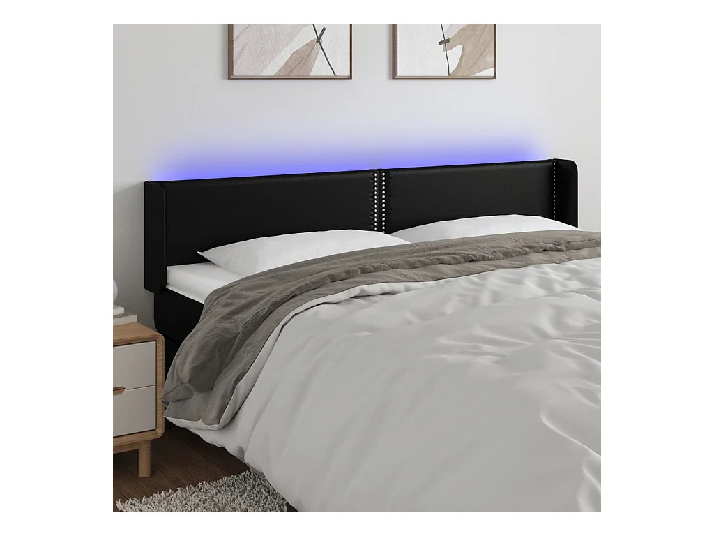 Cabecero | Cabezal de Cama | Mueble cabecero con LED cuero sintético negro 183x16x78/88 cm