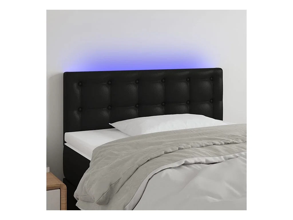 Cabecero | Cabezal de Cama | Mueble cabecero con LED cuero sintético negro 90x5x78/88 cm