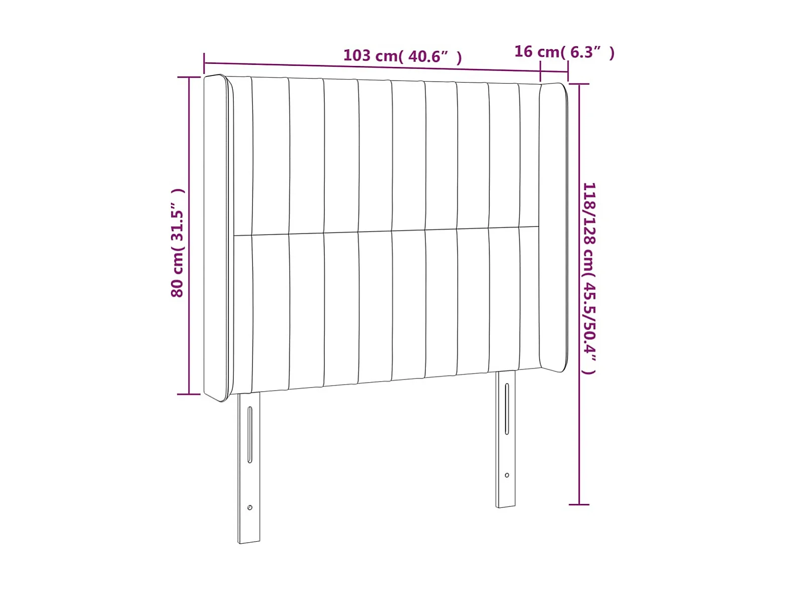 Cabecero | Cabezal de Cama | Mueble cabecero con LED de terciopelo azul oscuro 103x16x118/128 cm