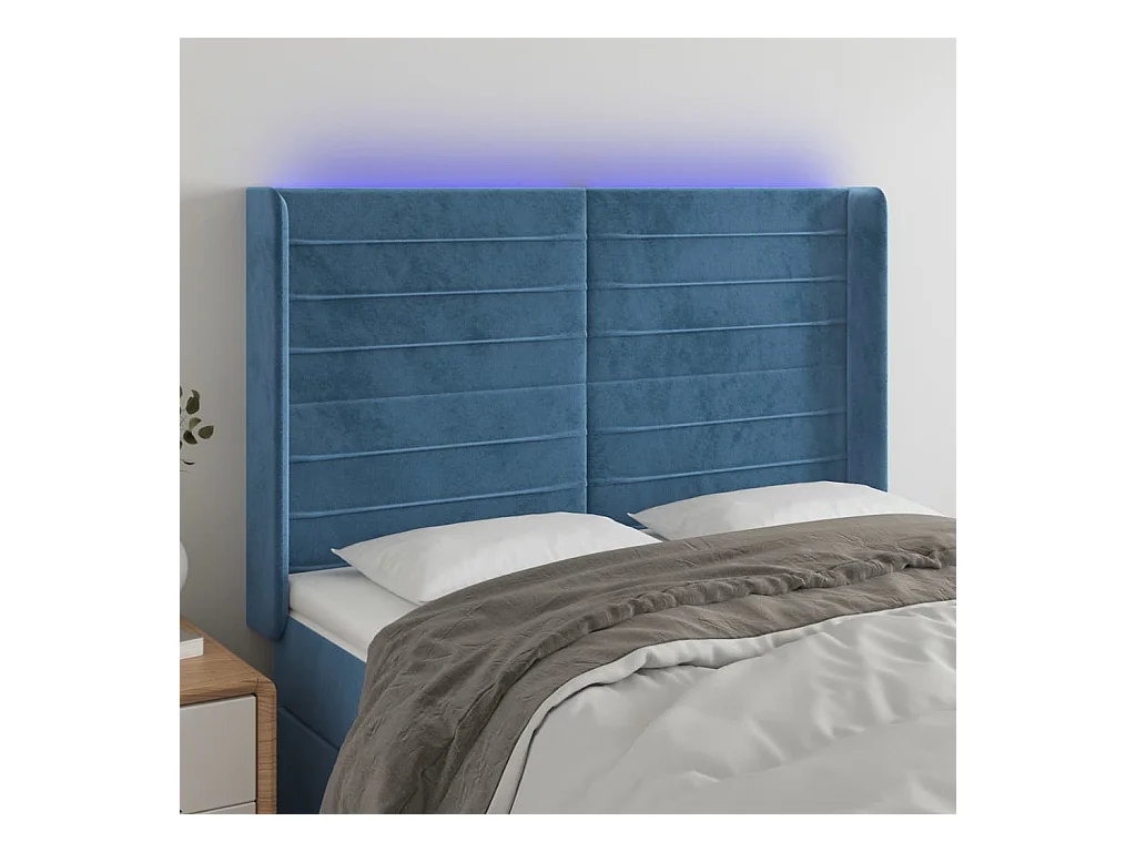 Cabecero | Cabezal de Cama | Mueble cabecero con LED de terciopelo azul oscuro 147x16x118/128 cm