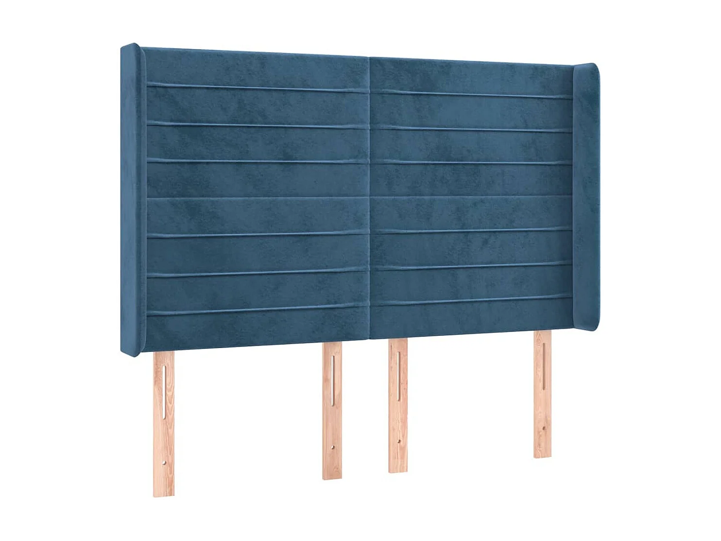 Cabecero | Cabezal de Cama | Mueble cabecero con orejas de terciopelo azul oscuro 147x16x118/128 cm