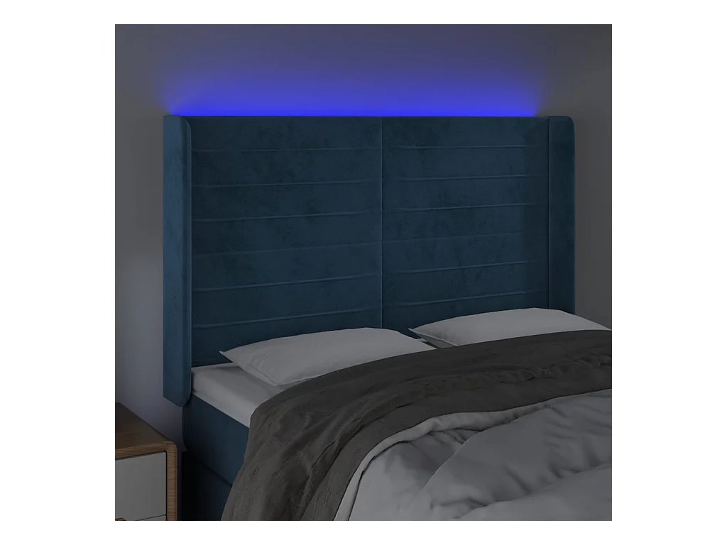 Cabecero | Cabezal de Cama | Mueble cabecero con LED de terciopelo azul oscuro 183x16x118/128 cm