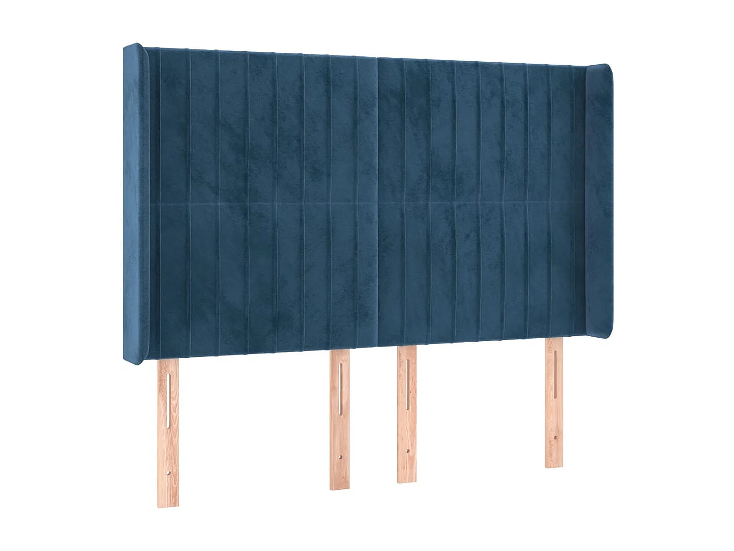 Cabecero | Cabezal de Cama | Mueble cabecero con orejas de terciopelo azul oscuro 147x16x118/128 cm