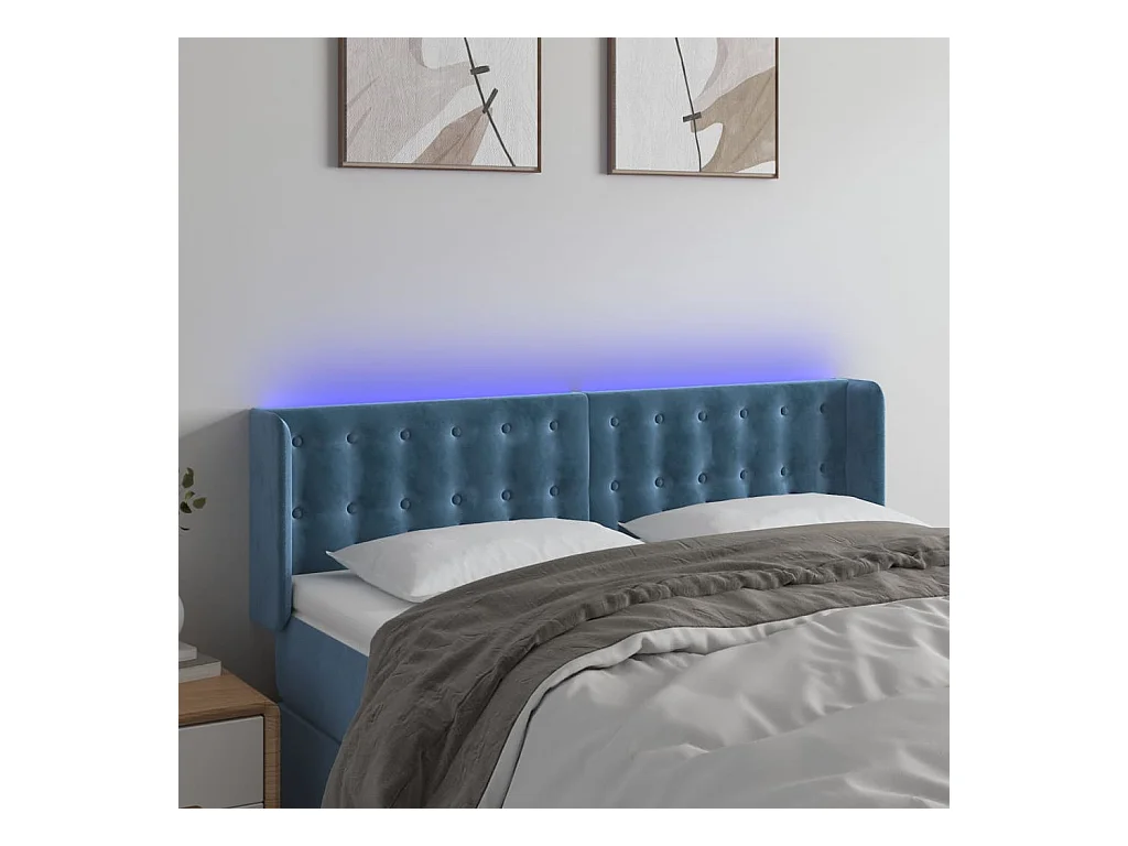 Cabecero | Cabezal de Cama | Mueble cabecero con LED de terciopelo azul oscuro 147x16x118/128 cm