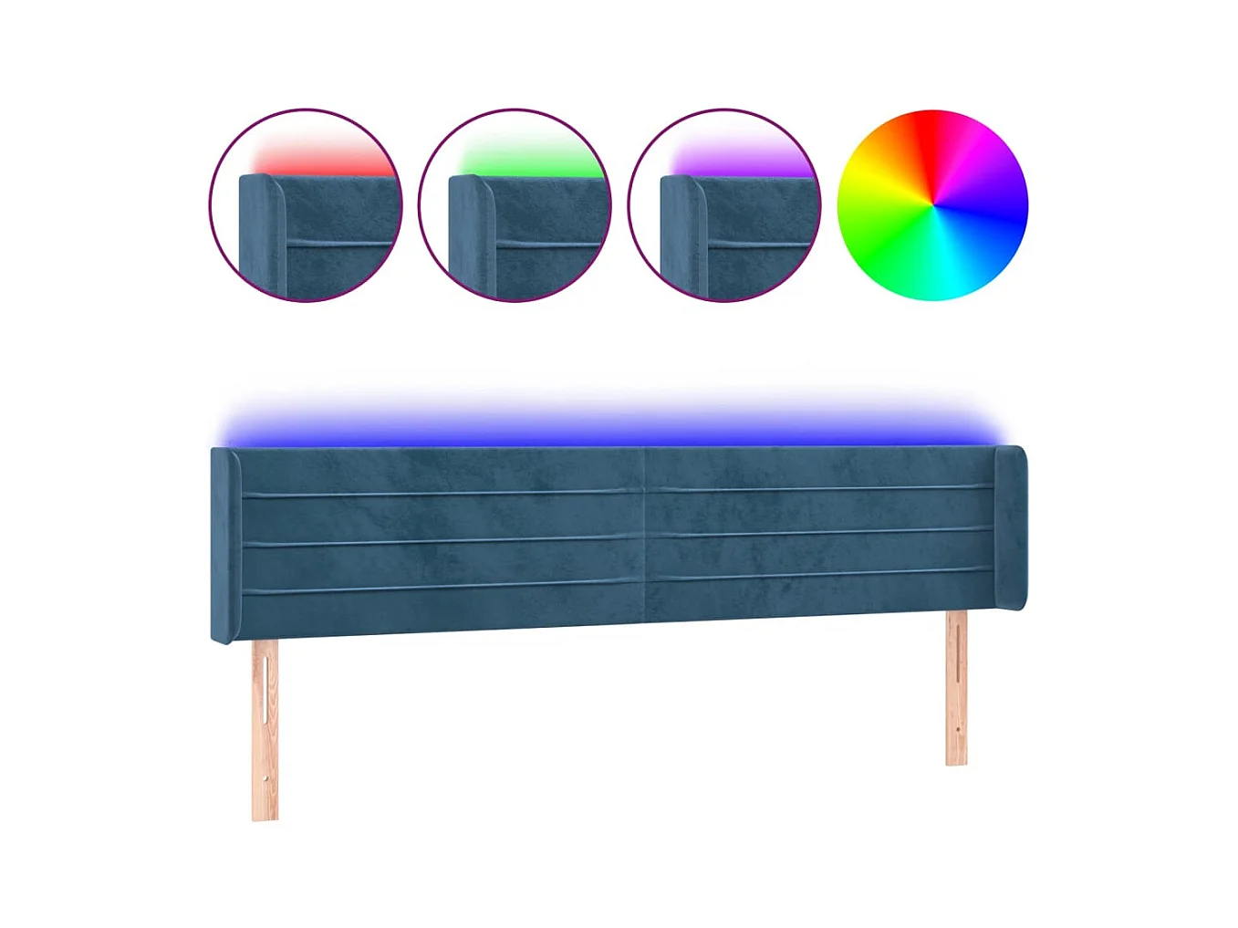 Cabecero | Cabezal de Cama | Mueble cabecero con LED de terciopelo azul oscuro 203x16x78/88 cm