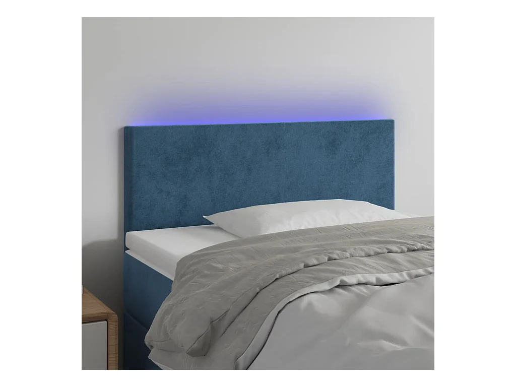 Cabecero | Cabezal de Cama | Mueble cabecero con LED de terciopelo azul oscuro 90x5x78/88 cm