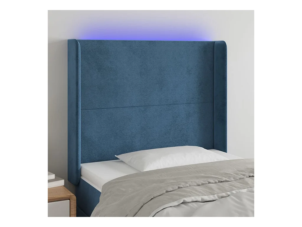 Cabecero | Cabezal de Cama | Mueble cabecero con LED de terciopelo azul oscuro 93x16x118/128 cm