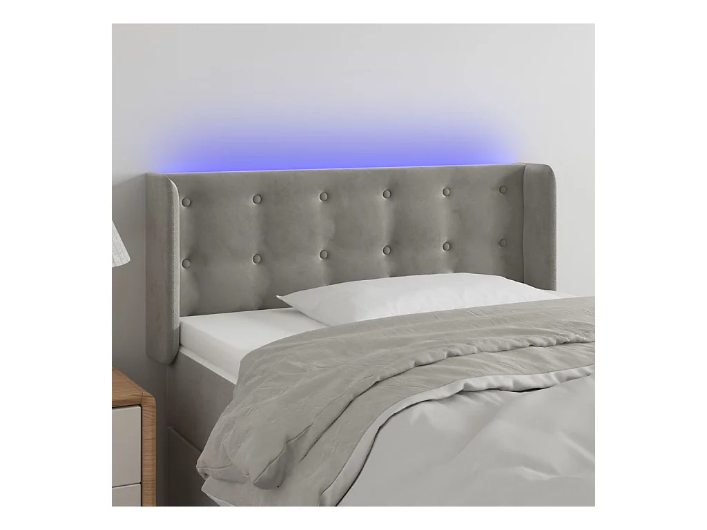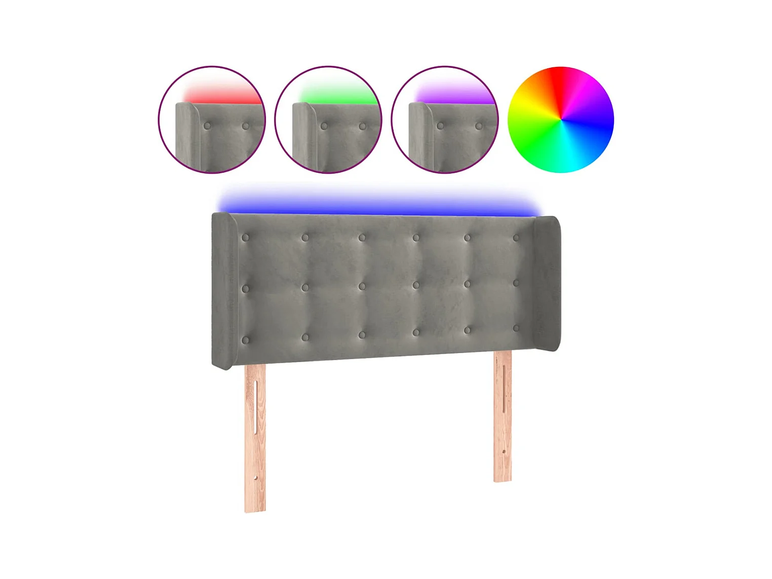 Cabecero | Cabezal de Cama | Mueble cabecero con LED de terciopelo gris claro 103x16x78/88 cm