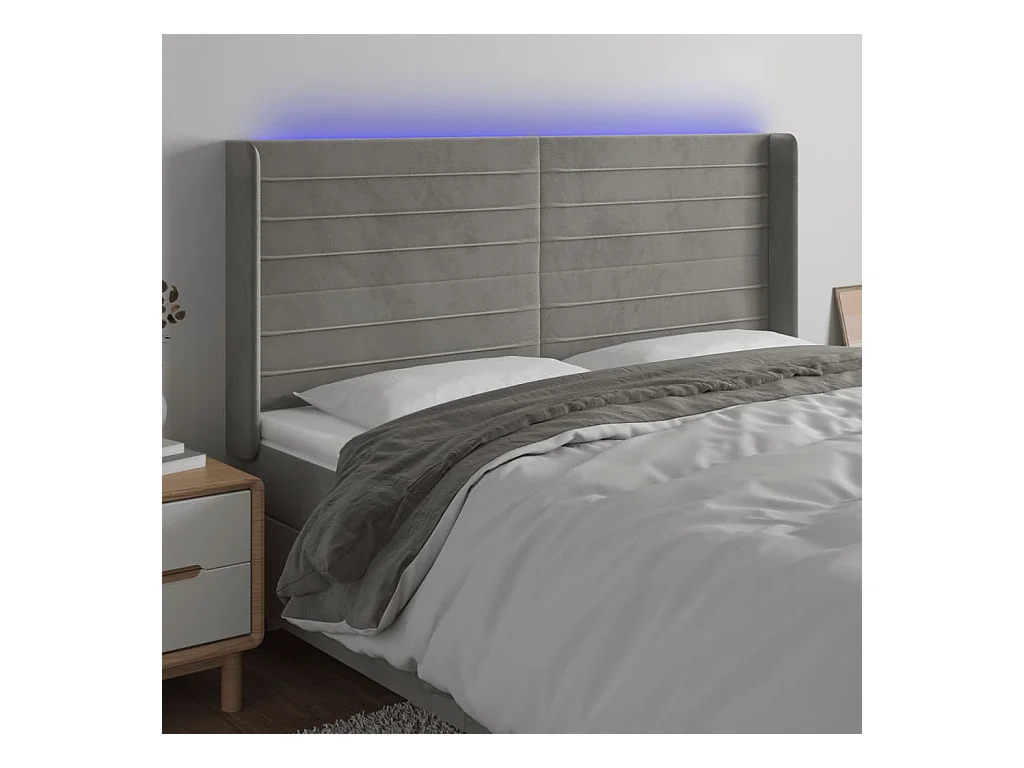 Cabecero | Cabezal de Cama | Mueble cabecero con LED de terciopelo gris claro 163x16x118/128 cm