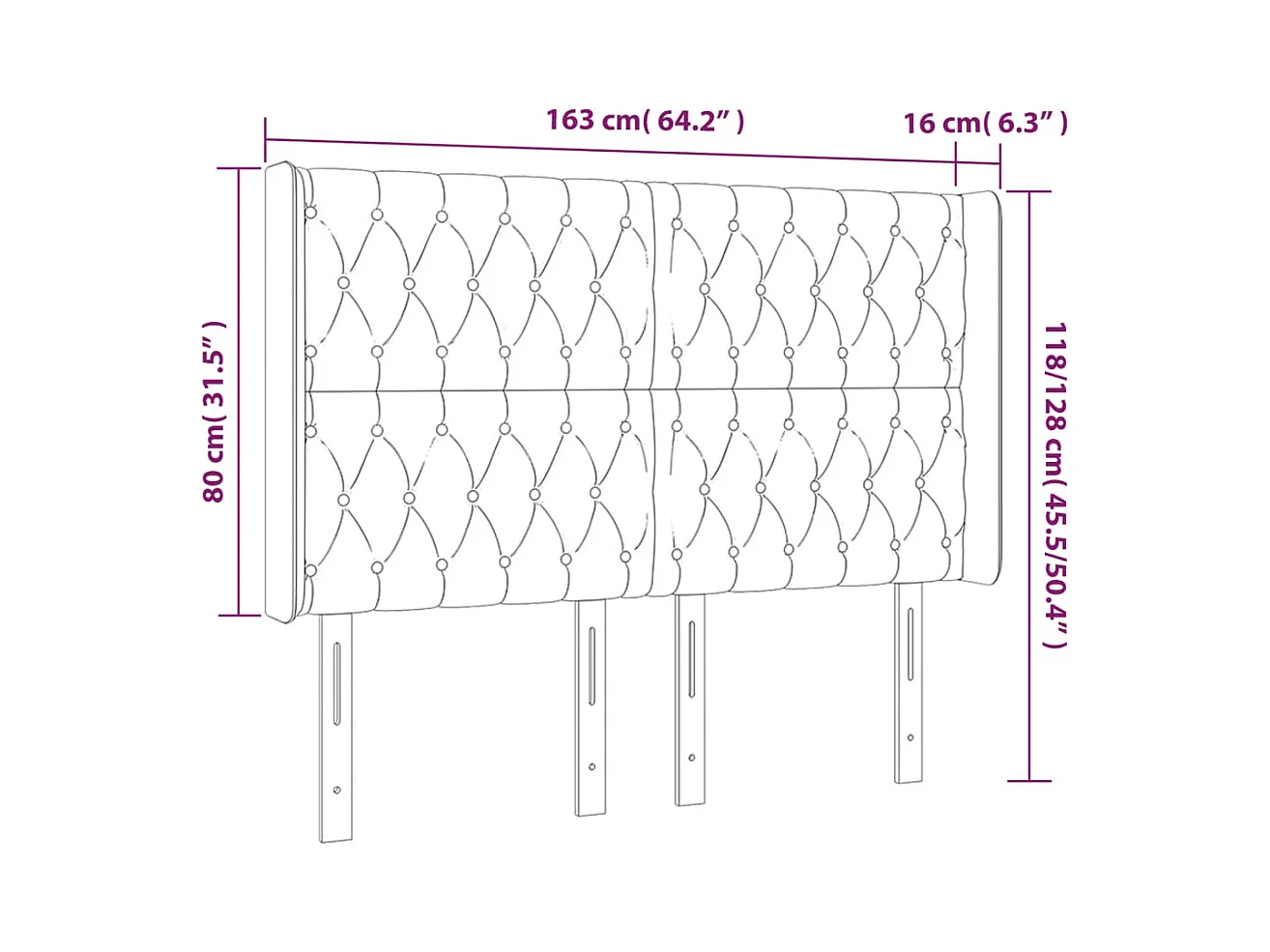 Cabecero | Cabezal de Cama | Mueble cabecero con orejas de terciopelo gris oscuro 163x16x118/128 cm