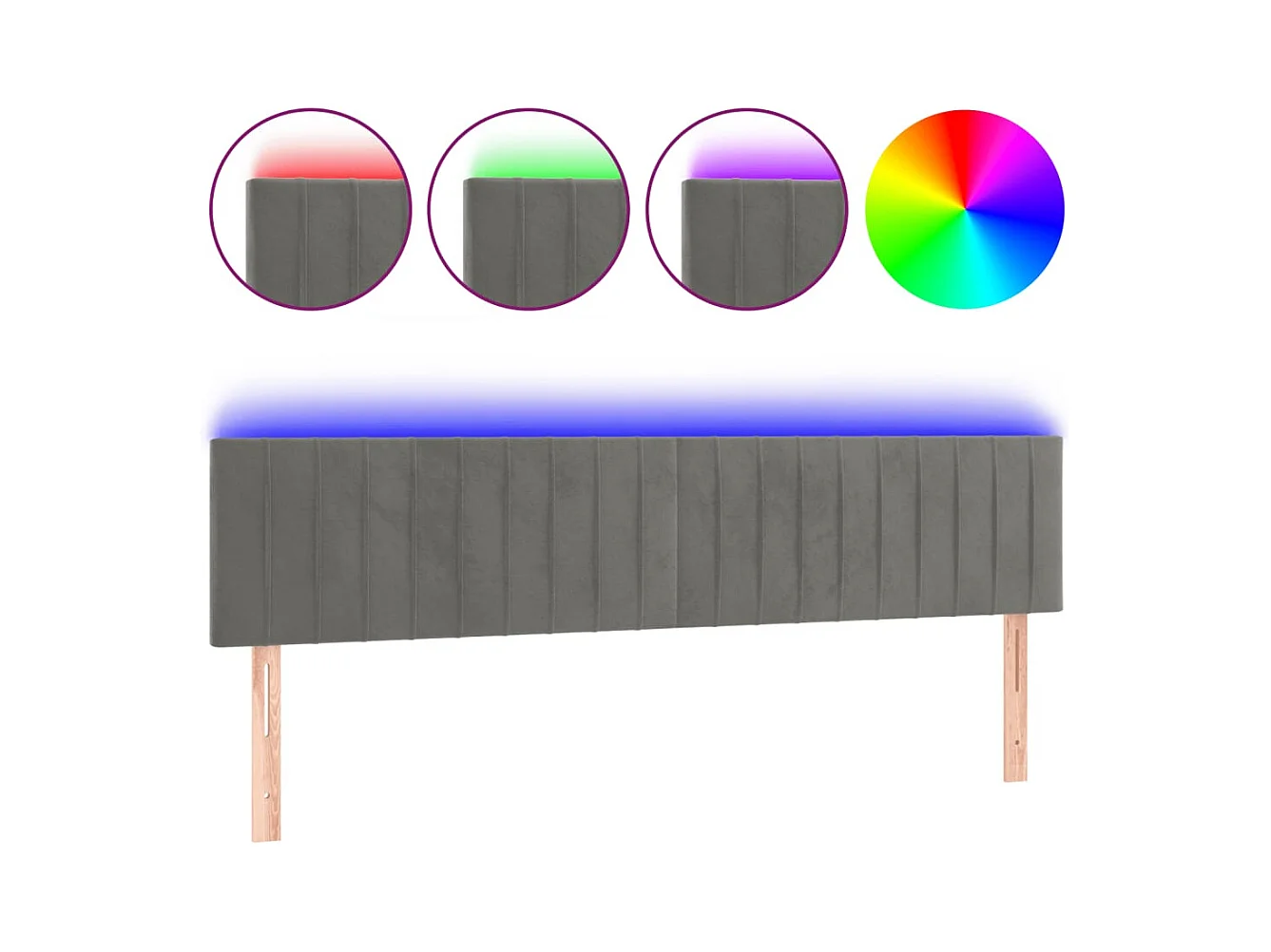 Cabecero | Cabezal de Cama | Mueble cabecero con LED de terciopelo gris claro 180x5x78/88 cm