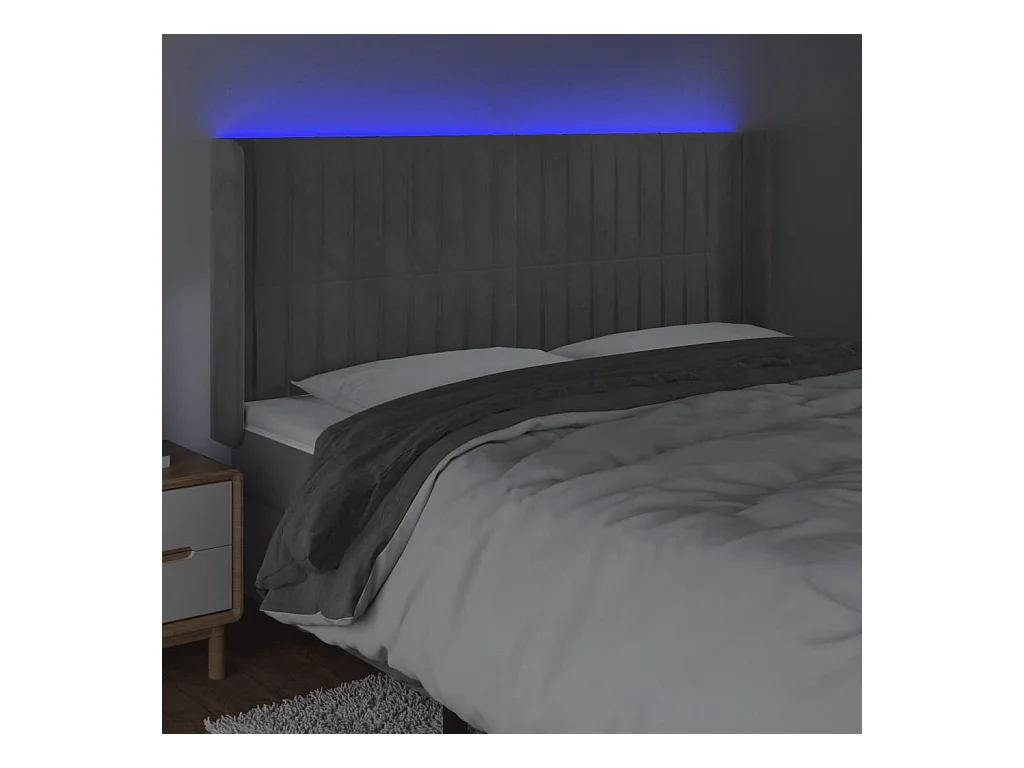 Cabecero | Cabezal de Cama | Mueble cabecero con LED de terciopelo gris claro 183x16x118/128 cm