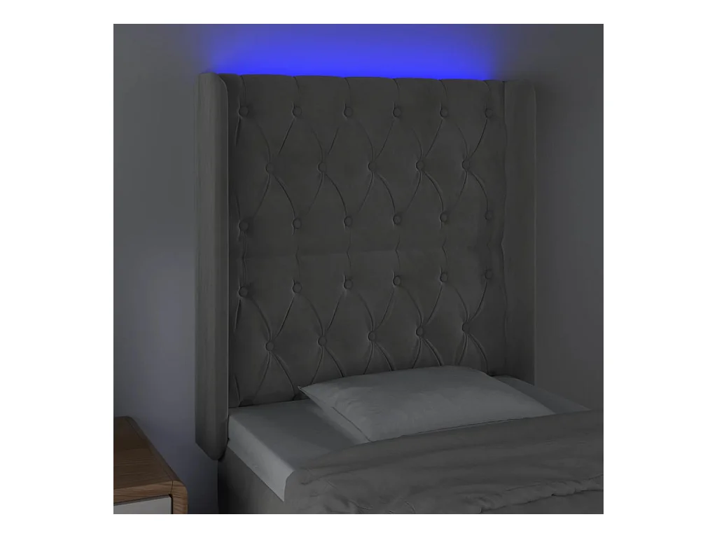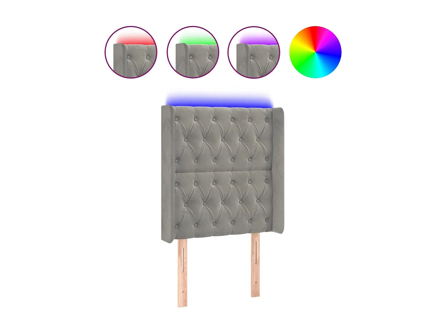 Cabecero | Cabezal de Cama | Mueble cabecero con LED de terciopelo gris claro 83x16x118/128 cm