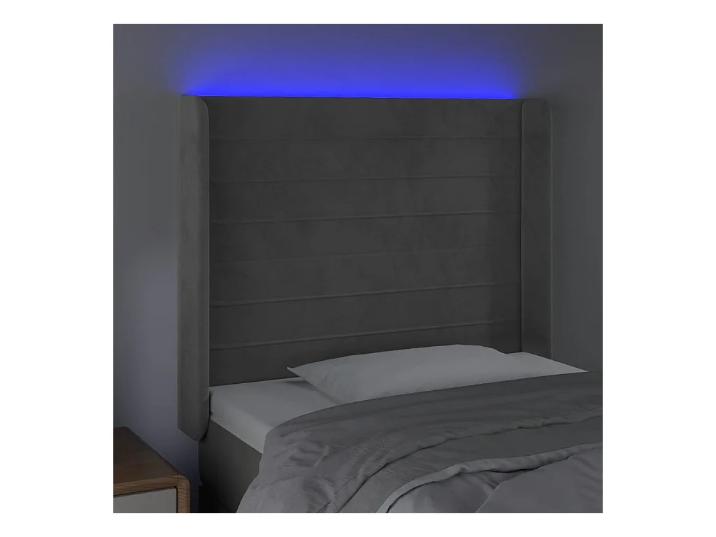Cabecero | Cabezal de Cama | Mueble cabecero con LED de terciopelo gris claro 93x16x118/128 cm