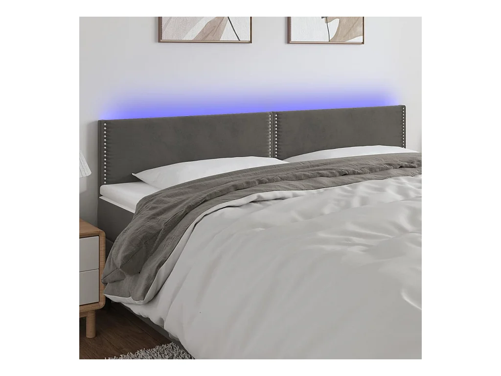 Cabecero | Cabezal de Cama | Mueble cabecero con LED de terciopelo gris oscuro 180x5x78/88 cm