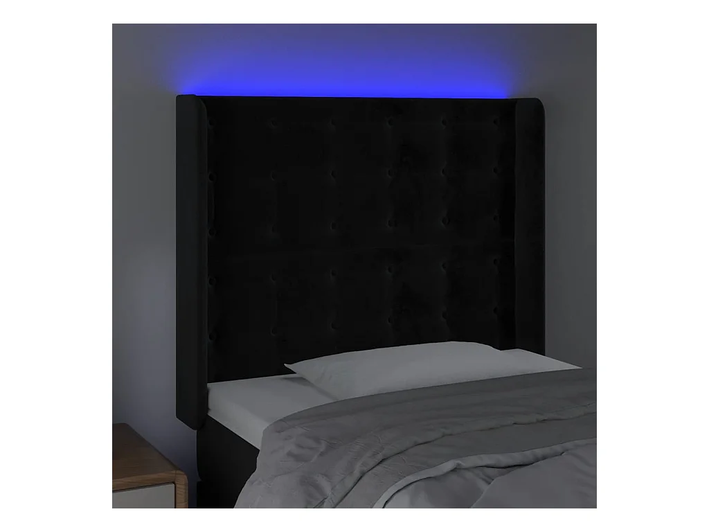 Cabecero | Cabezal de Cama | Mueble cabecero con LED de terciopelo negro 103x16x118/128 cm