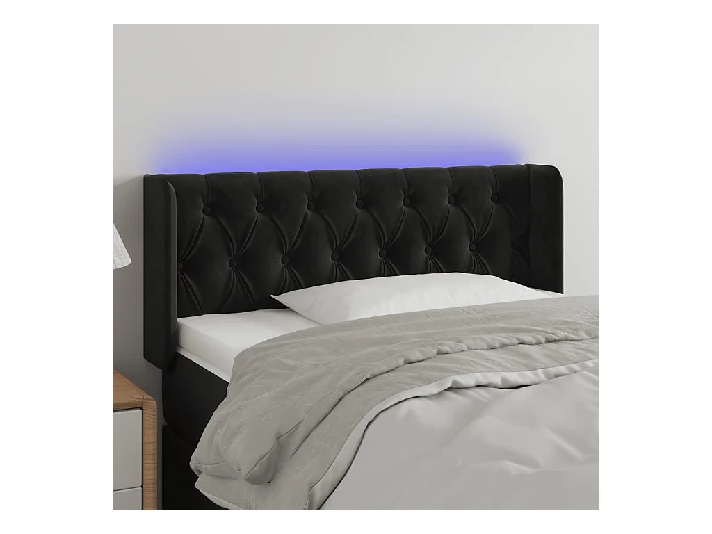 Cabecero | Cabezal de Cama | Mueble cabecero con LED de terciopelo negro 103x16x78/88 cm