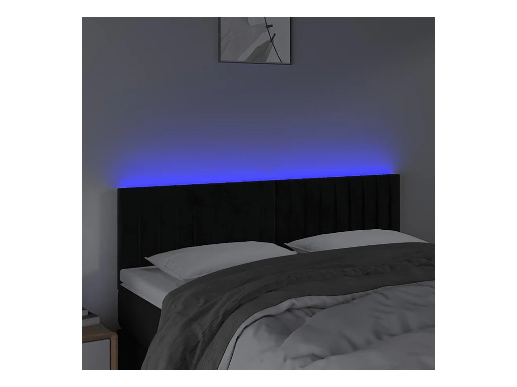 Cabecero | Cabezal de Cama | Mueble cabecero con LED de terciopelo negro 144x5x78/88 cm