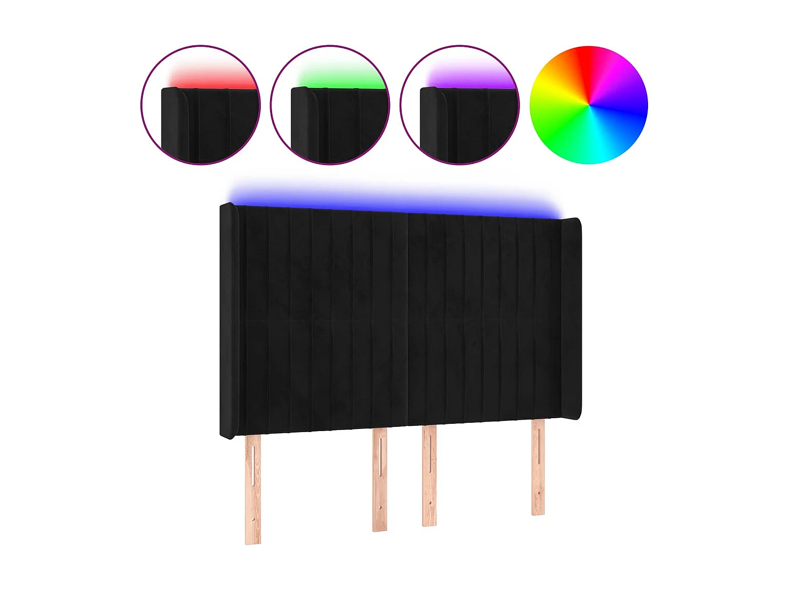 Cabecero | Cabezal de Cama | Mueble cabecero con LED de terciopelo negro 147x16x118/128 cm