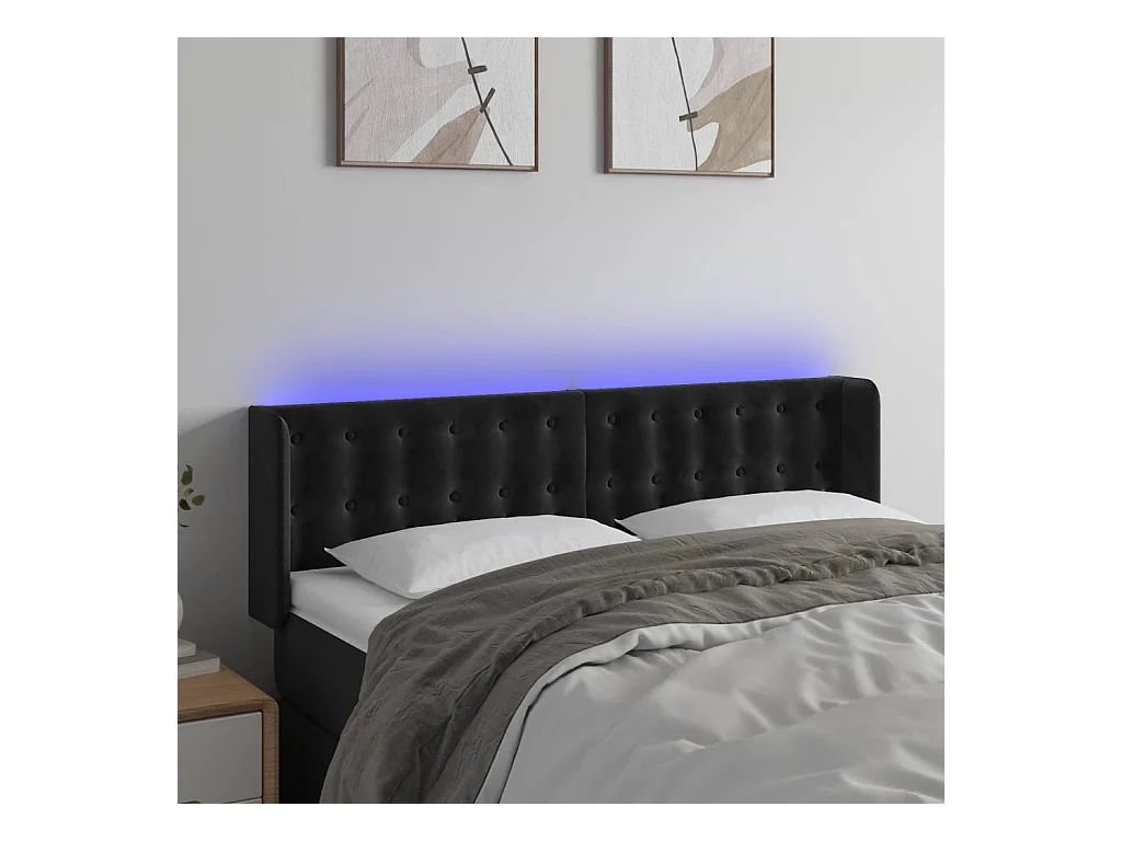 Cabecero | Cabezal de Cama | Mueble cabecero con LED de terciopelo negro 147x16x78/88 cm