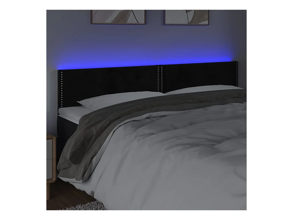 Cabecero | Cabezal de Cama | Mueble cabecero con LED de terciopelo negro 180x5x78/88 cm