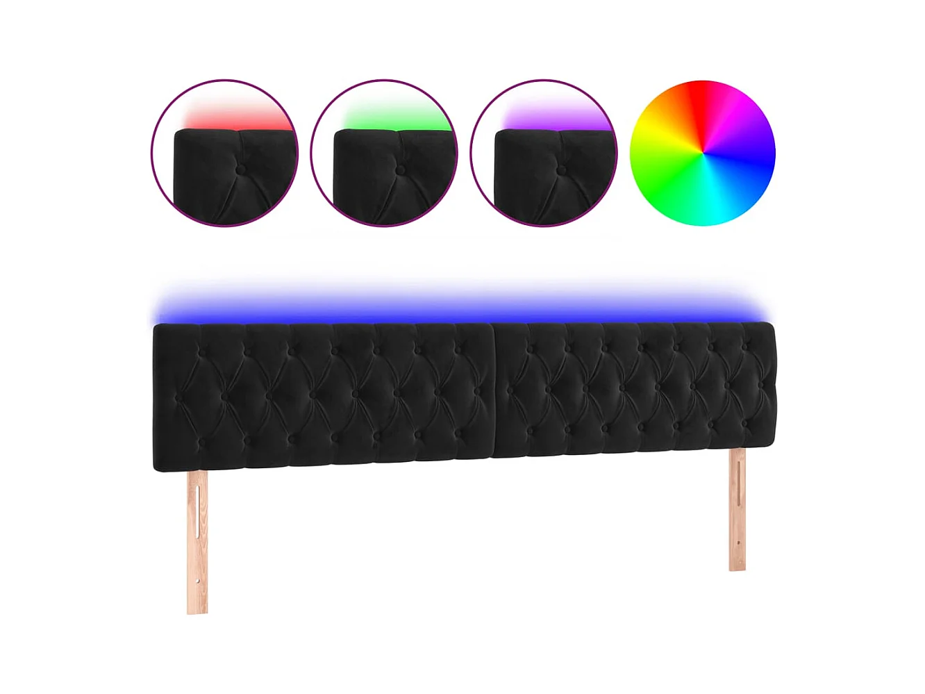 Cabecero | Cabezal de Cama | Mueble cabecero con LED de terciopelo negro 200x5x78/88 cm