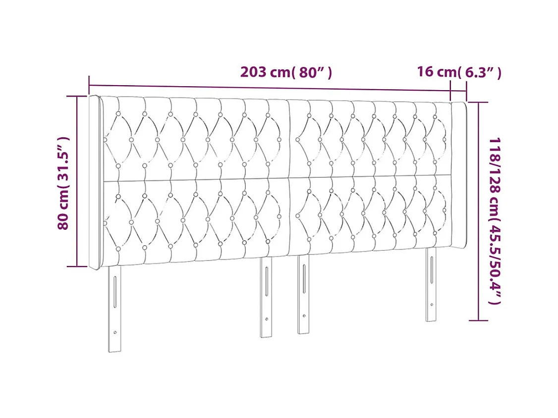 Cabecero | Cabezal de Cama | Mueble cabecero con orejas de terciopelo negro 203x16x118/128 cm