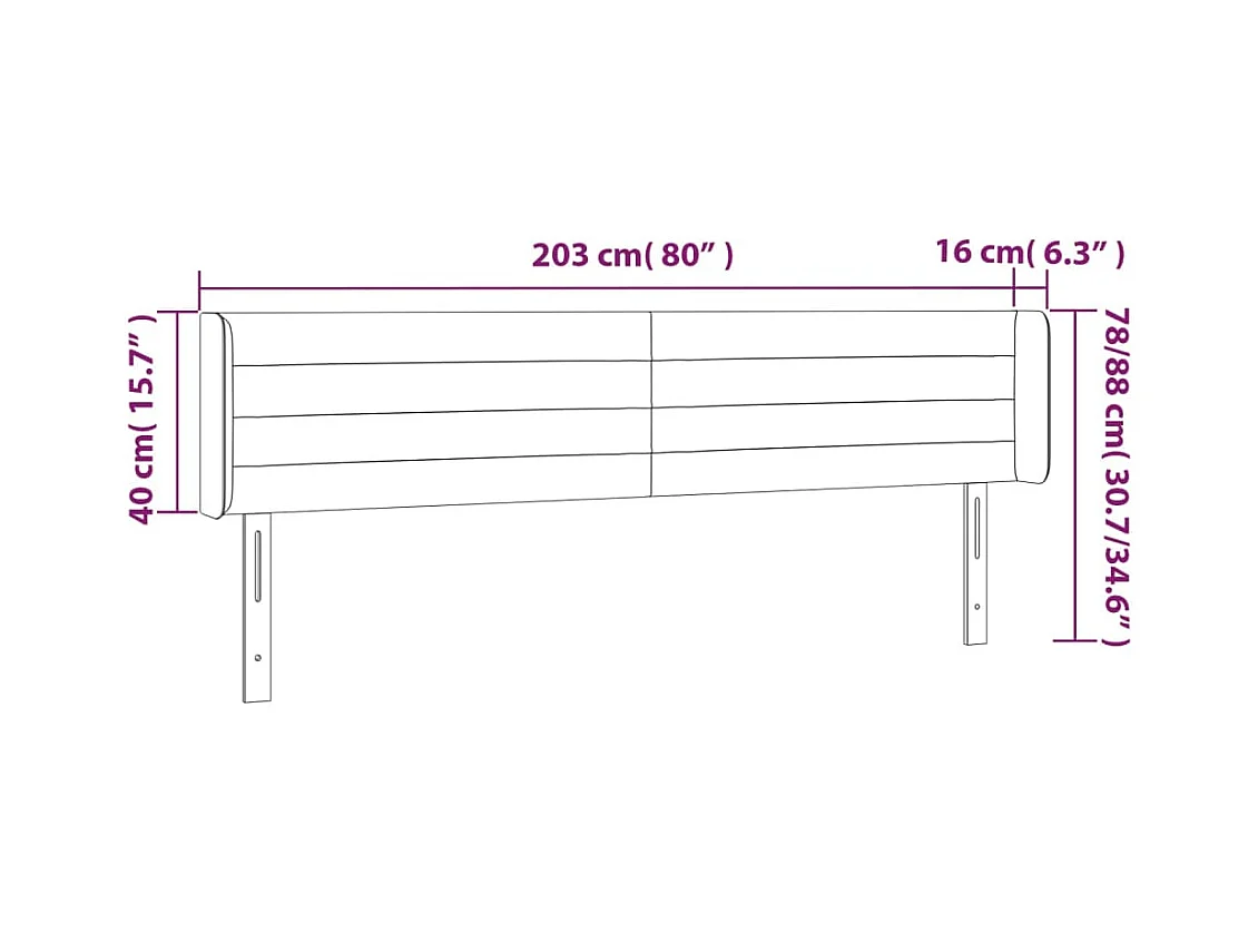 Cabecero | Cabezal de Cama | Mueble cabecero con LED de terciopelo negro 203x16x78/88 cm