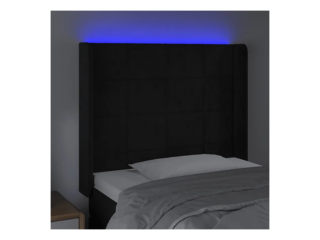 Cabecero | Cabezal de Cama | Mueble cabecero con LED de terciopelo negro 83x16x118/128 cm