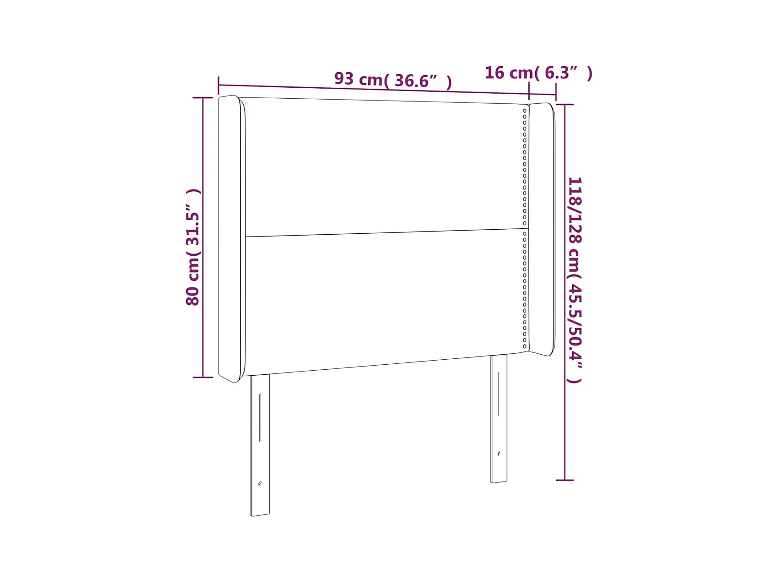 Cabecero | Cabezal de Cama | Mueble cabecero con orejas de terciopelo negro 93x16x118/128 cm