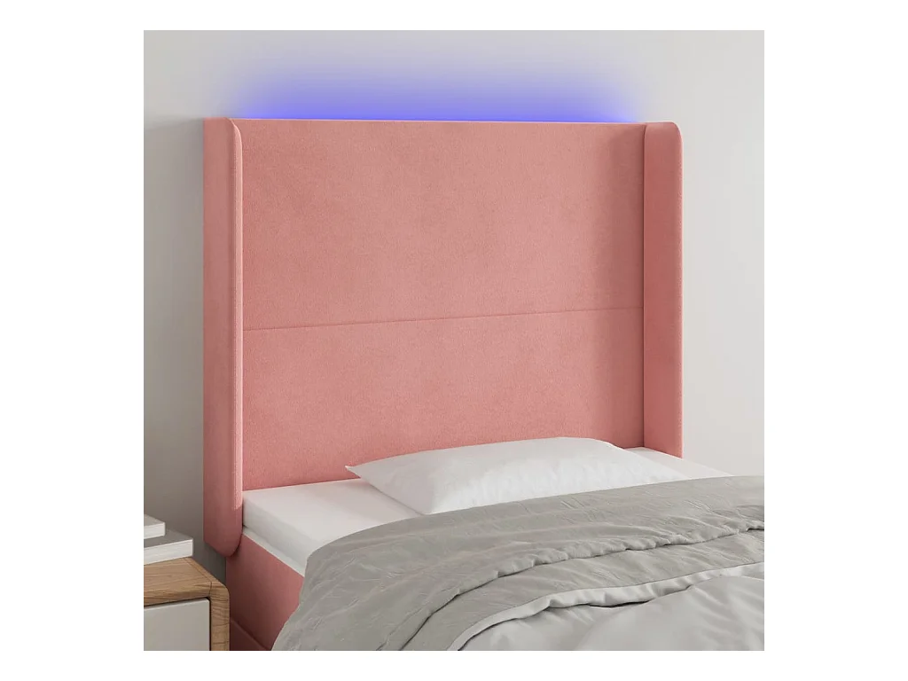 Cabecero | Cabezal de Cama | Mueble cabecero con LED de terciopelo rosa 103x16x118/128 cm