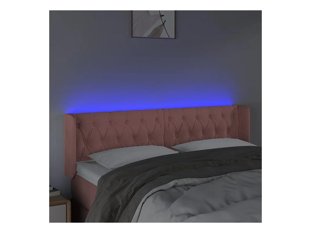 Cabecero | Cabezal de Cama | Mueble cabecero con LED de terciopelo rosa 147x16x78/88 cm