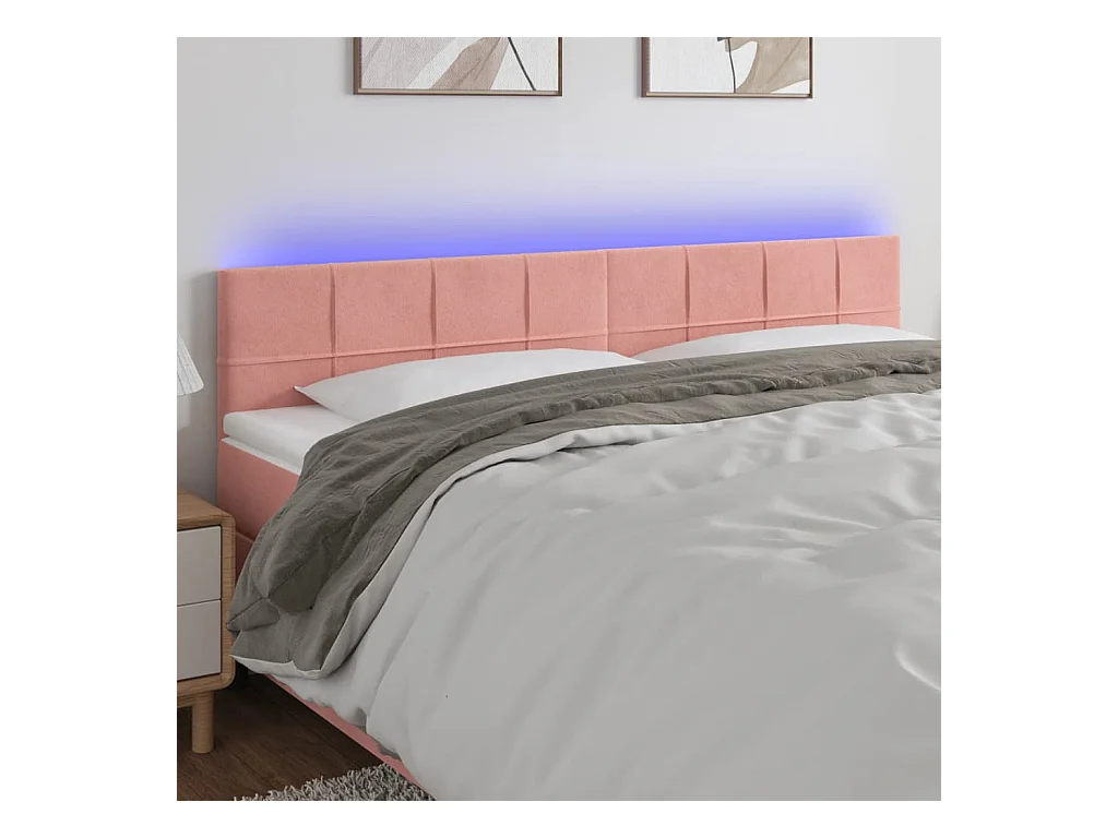 Cabecero | Cabezal de Cama | Mueble cabecero con LED de terciopelo rosa 200x5x78/88 cm