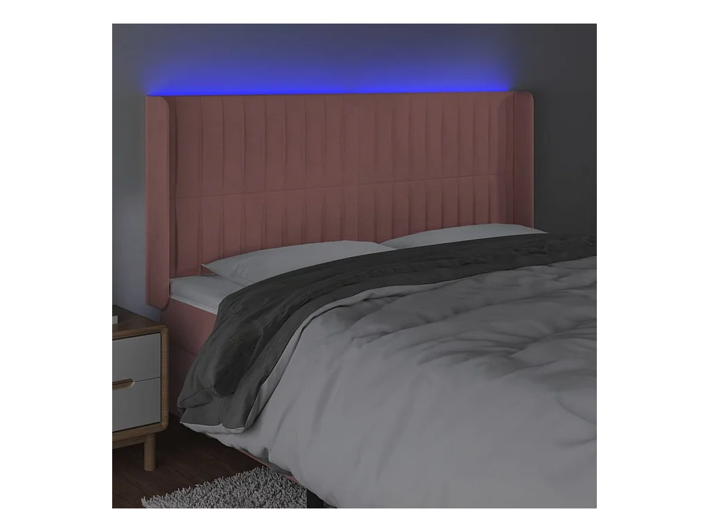 Cabecero | Cabezal de Cama | Mueble cabecero con LED de terciopelo rosa 203x16x118/128 cm