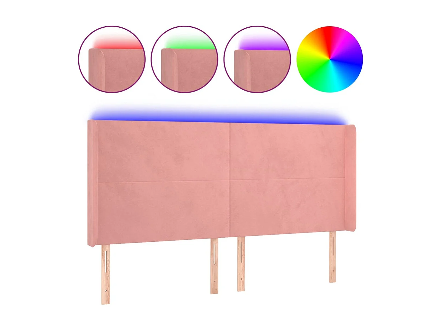 Cabecero | Cabezal de Cama | Mueble cabecero con LED de terciopelo rosa 203x16x118/128 cm