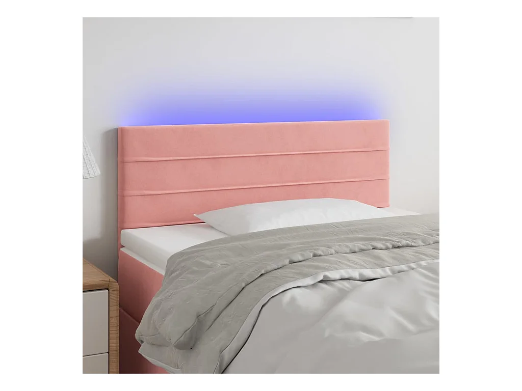 Cabecero | Cabezal de Cama | Mueble cabecero con LED de terciopelo rosa 90x5x78/88 cm