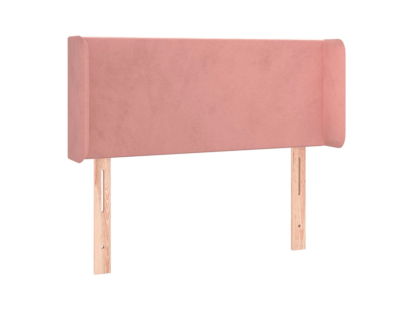 Cabecero | Cabezal de Cama | Mueble cabecero con orejas de terciopelo rosa 83x16x118/128 cm