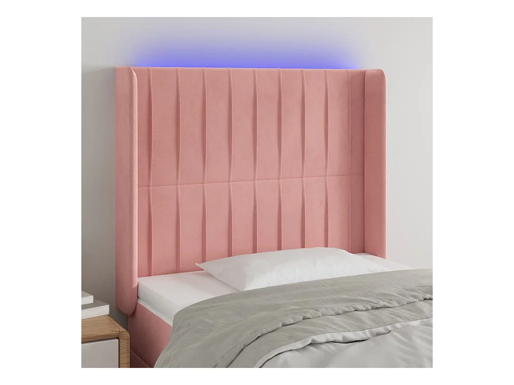 Cabecero | Cabezal de Cama | Mueble cabecero con LED de terciopelo rosa 93x16x118/128 cm