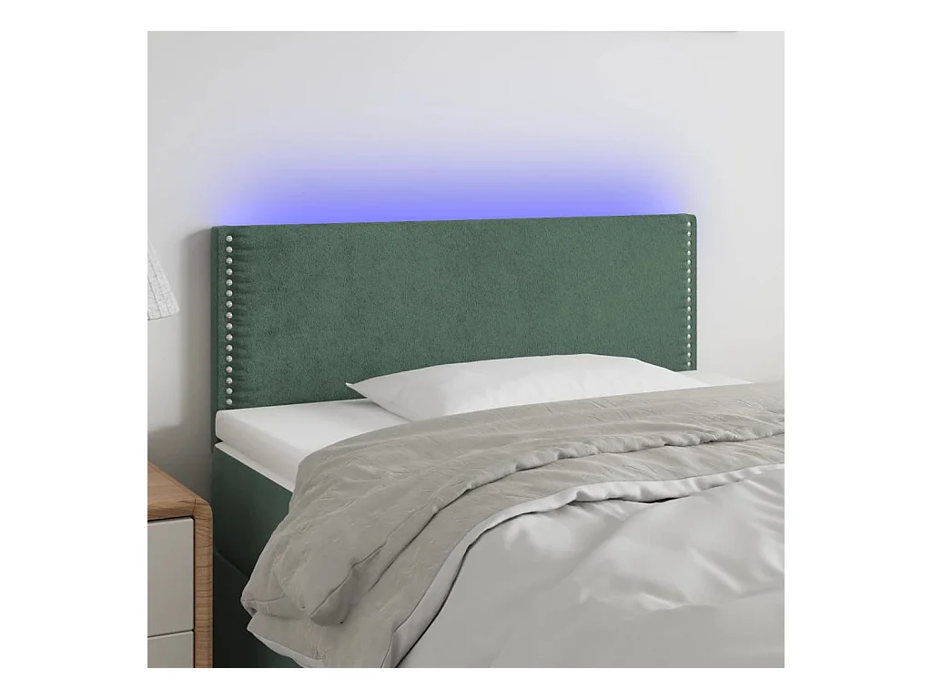 Cabecero | Cabezal de Cama | Mueble cabecero con LED de terciopelo verde oscuro 100x5x78/88 cm