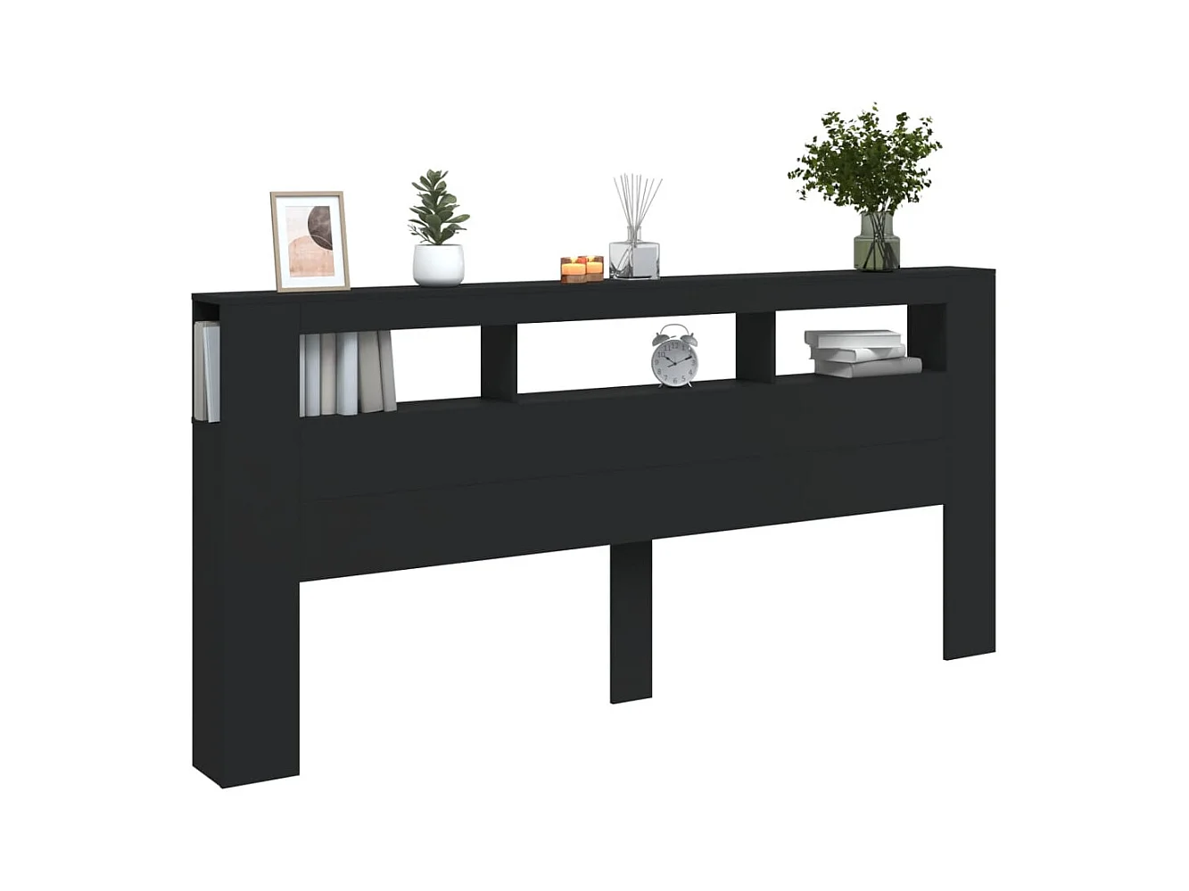 Cabecero | Cabezal de Cama | Mueble cabecero con LED madera de ingeniería negro 200x18,5x103,5 cm