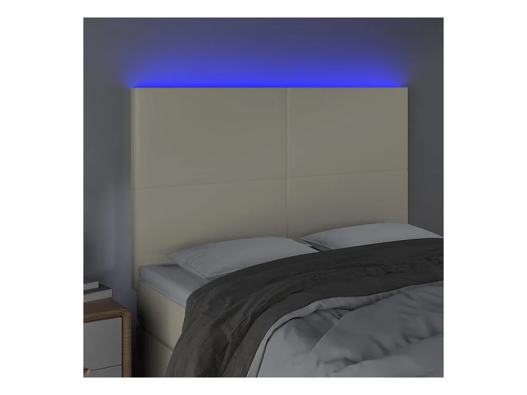 Cabecero | Cabezal de Cama | Mueble cabecero con luces LED tela crema 144x5x118/128 cm