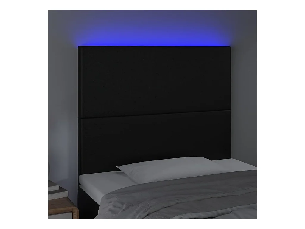 Cabecero | Cabezal de Cama | Mueble cabecero con luces LED cuero sintético negro 90x5x118/128 cm