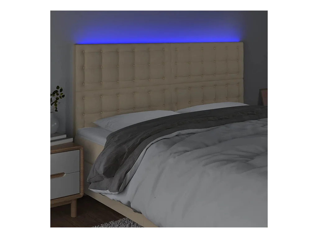 Mueble cabecero | Cabezal de cama | Cabecero con LED de tela color crema 200x5x78/88 cm