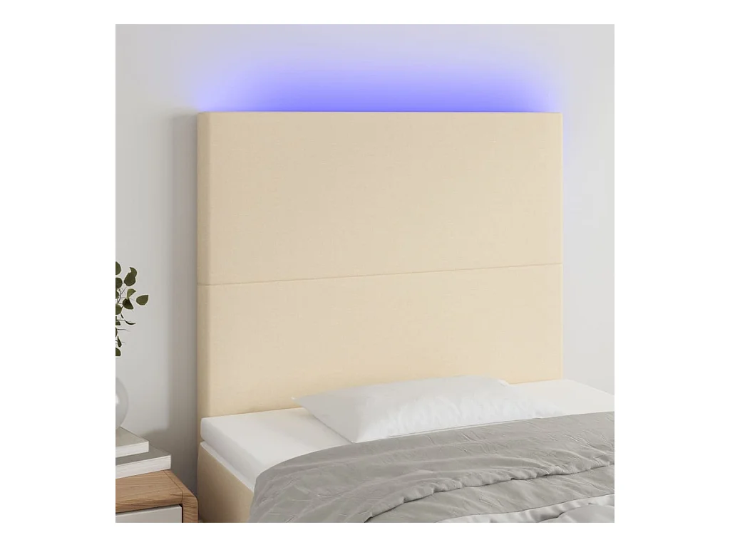 Mueble cabecero | Cabezal de cama | Cabecero con LED de tela color crema 80x5x78/88 cm
